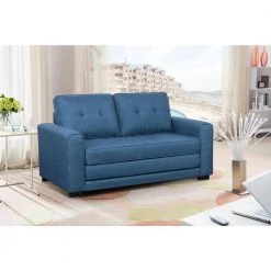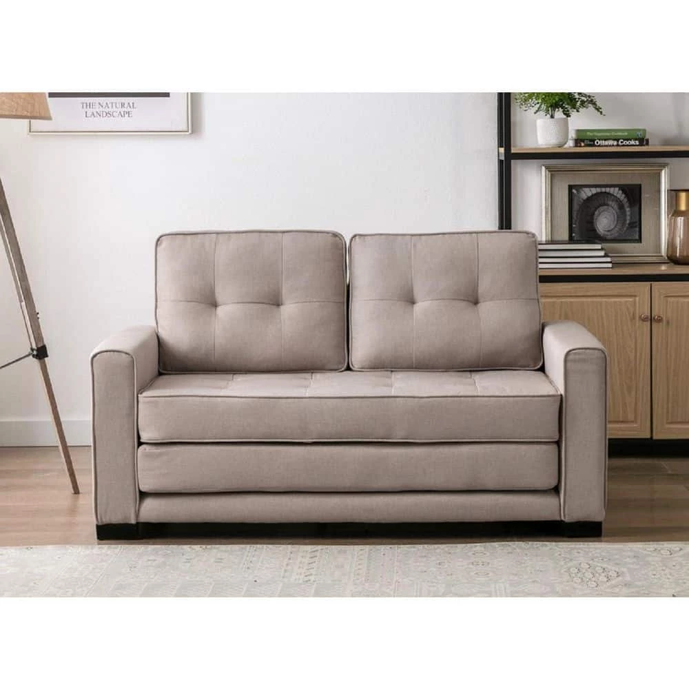 This convertible sleeper loveseat has a wooden frame that makes it tough and durable. It is upholstered in Linen Fabric, which gives you the much needed comfort and rest. The Sofa Bed features a tufted style and sports a stunning charcoal color on a simple yet elegant solid pattern. . It is suitable for residential as well as commercial use.