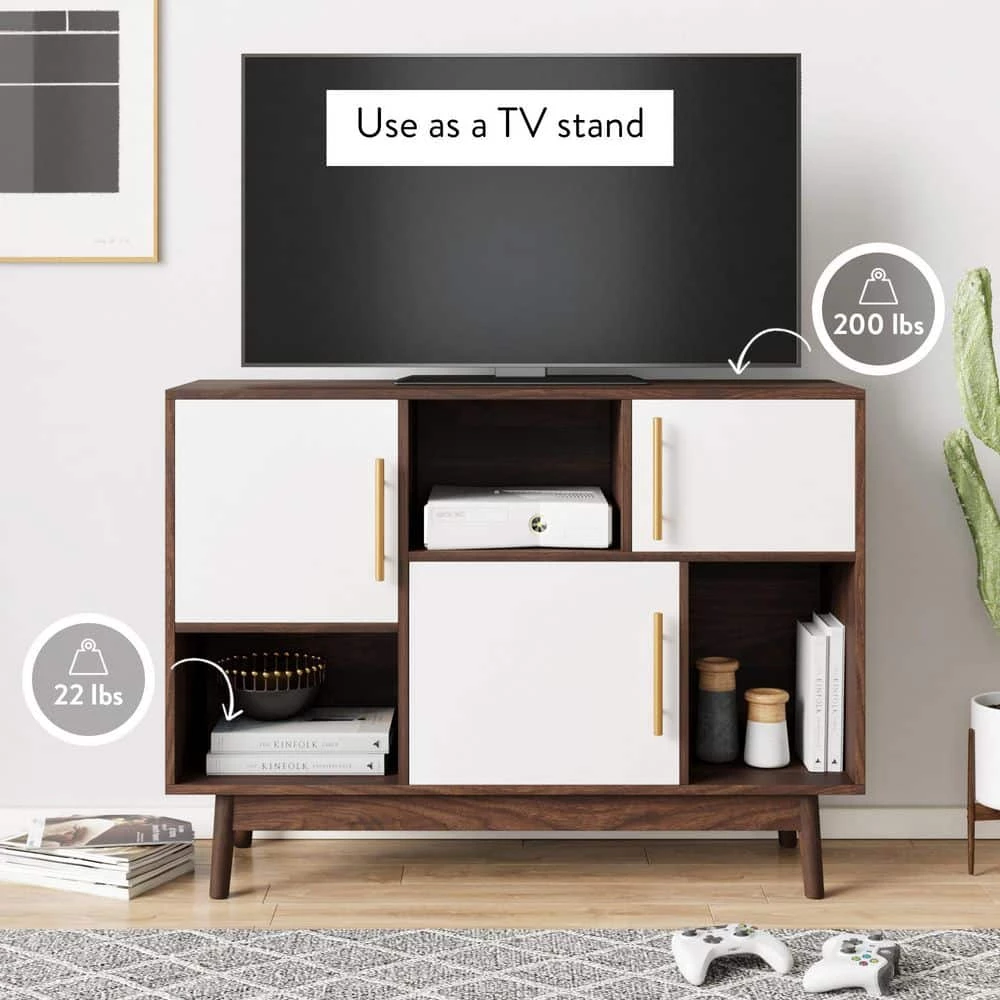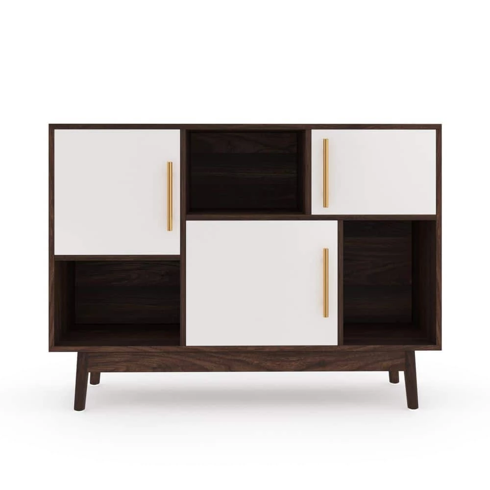 - Bring order to your office or entryway with the 3-cabinet closed and 2 open ample storage. Keep it elegant thanks to its metal brass handle hardware