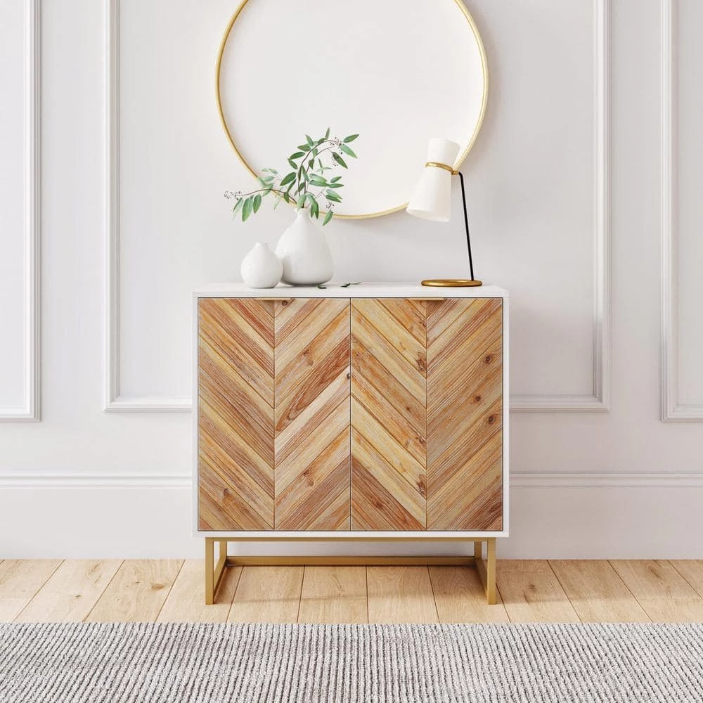 - Both rustic and modern, the accent storage cabinet with beautiful herringbone wood doors design will add style and character to any room