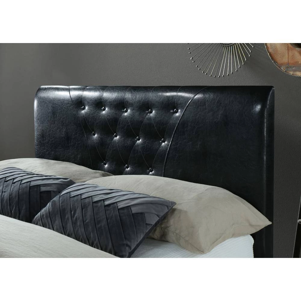 - Modern design with a beautiful tufted headboard finish upholstered in fabric