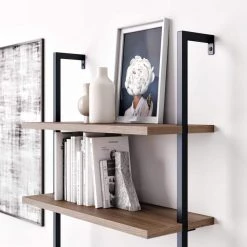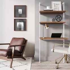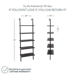 Theo Dark Walnut Brown 5-Shelf Ladder Bookcase or Bookshelf with Black Metal Frame by Nathan James