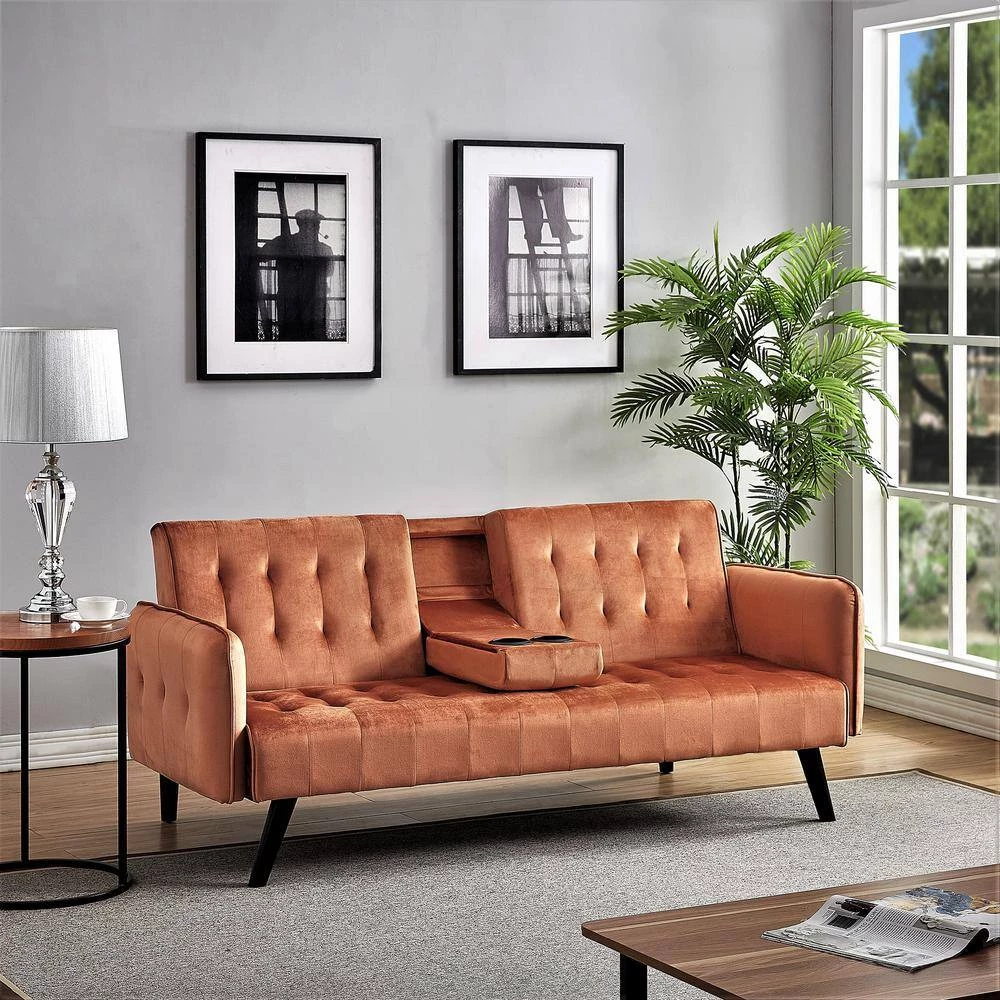 This sleeper is a mix between mid-century and a refined retro style with its classic lines, velvet fabric with tufted design with wood legs. The symmetrical design and tapered legs give it a vintage spin, while the velvet soft fabric will offer a cozy feel for everyday use. The sofa easily pulls-out to become a sleeper, providing sleeping space for guests and sleepovers. its convertible design lets you transform this piece into a sleeper to accommodate overnight guests. The mid-century look that made straight lines and low profiles so popular.