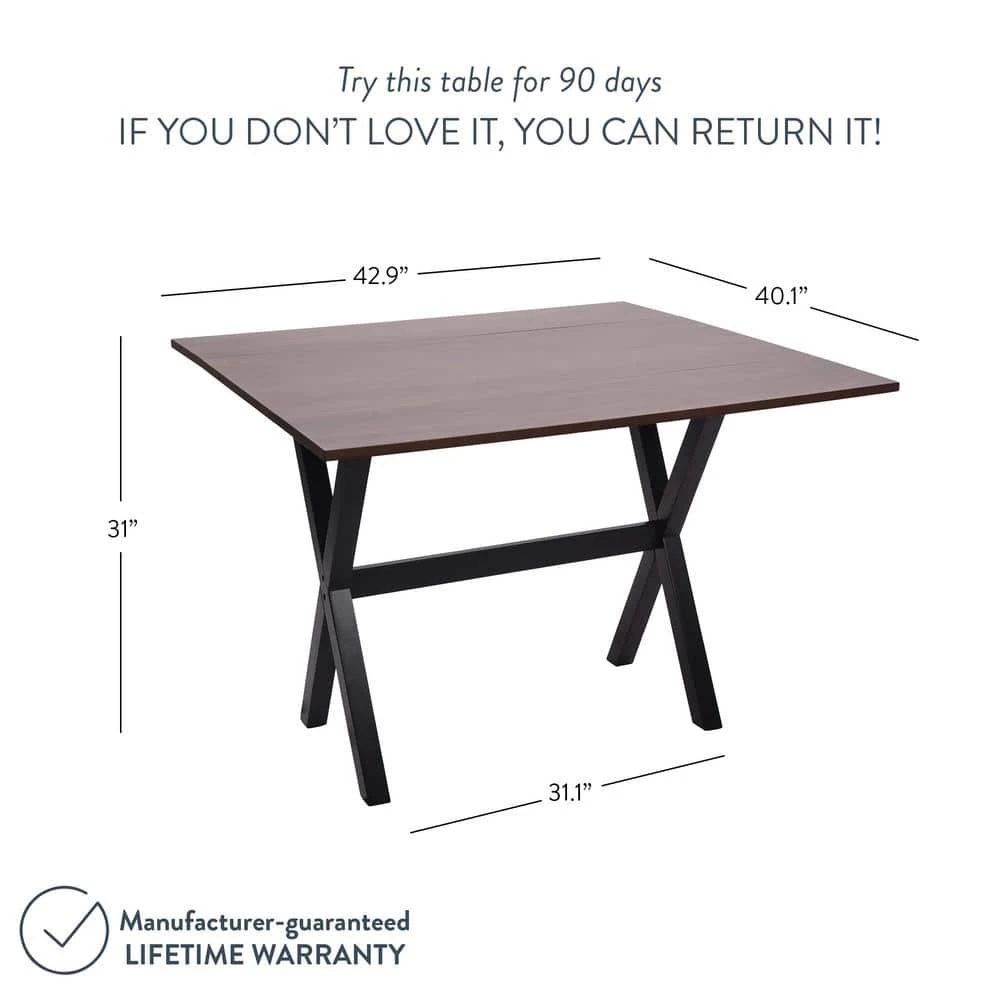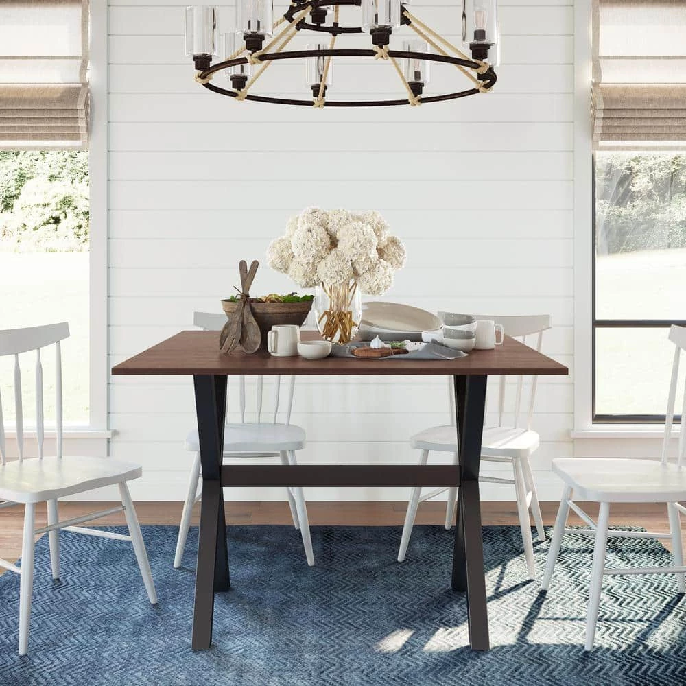 - The walnut brown wood tabletop can match any chair color while X-shaped solid wood base ensures stability.