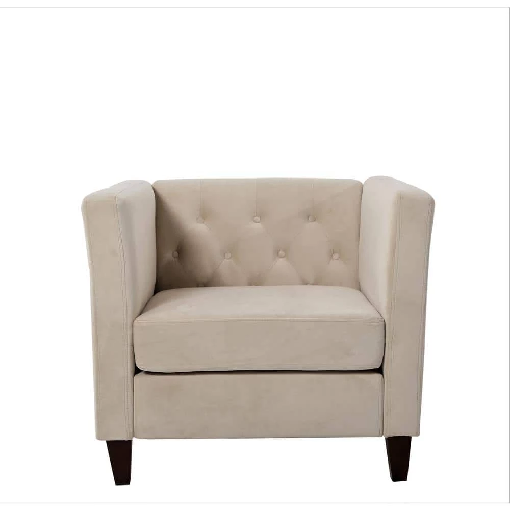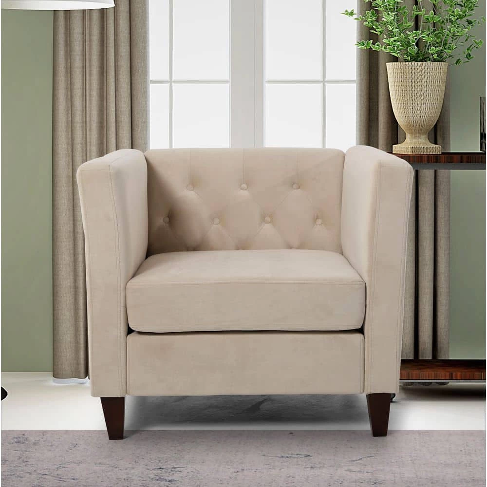The perfect piece to reflect your regal tastes, this classic loveseat anchors your seating ensemble in timeless appeal. Crafted from wood, this dapper design strikes an updated, clean-lined silhouette with tight square arms and wood tapered feet. Crushed velvet upholstery brings out this sofa’s glamorous side, while exquisite details including high-density foam fill with spring support, piped seat cushions, and a button-tufted backrest elevate the design.Not Included:OttomanToss PillowsProduct DetailsSwivel: NoCushion Construction: FoamFrame Material: Solid + Manufactured WoodLevel of Assembly: Full Assembly NeededWeight Capacity: 250 lb.
