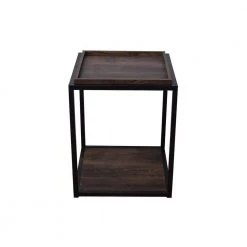 Oraa Nutmeg and Black Metal Frame Nightstand or Side Table with Storage Basket by Nathan James