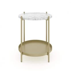 Alexis White Faux Marble with Gold Brass Metal Frame Round End Side Table by Nathan James