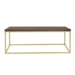 Doxa 44 in. Dark Brown/Gold Large Rectangle Wood Coffee Table with Metal Box Frame by Nathan James