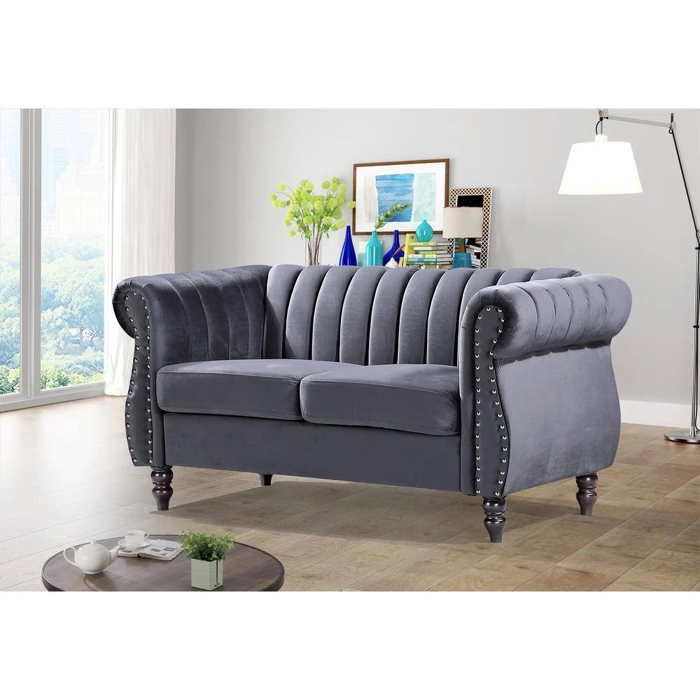 Beautifully styled and consciously crafted using materials, present your home in modern luxury with a centerpiece sofa that exudes a glamorous vibe at every angle. This chesterfield-inspired sofa is the ideal addition to any living room with its classic design and traditional elements such as scrolled arms, turned legs and nailhead accents. Upgraded with a sleek, modern touch of channel tufting, this sofa brings you an undeniably elegant touch to your interior space. Featuring soft velvet upholstery, this sofa stands as a streamlined statement-Piece that can change the whole flow of your living room. Velvet fabric upholstery imparts timeless style, while high-density foam creates luxuriously comfortable seating Complete your living room decor with these chic seating options.