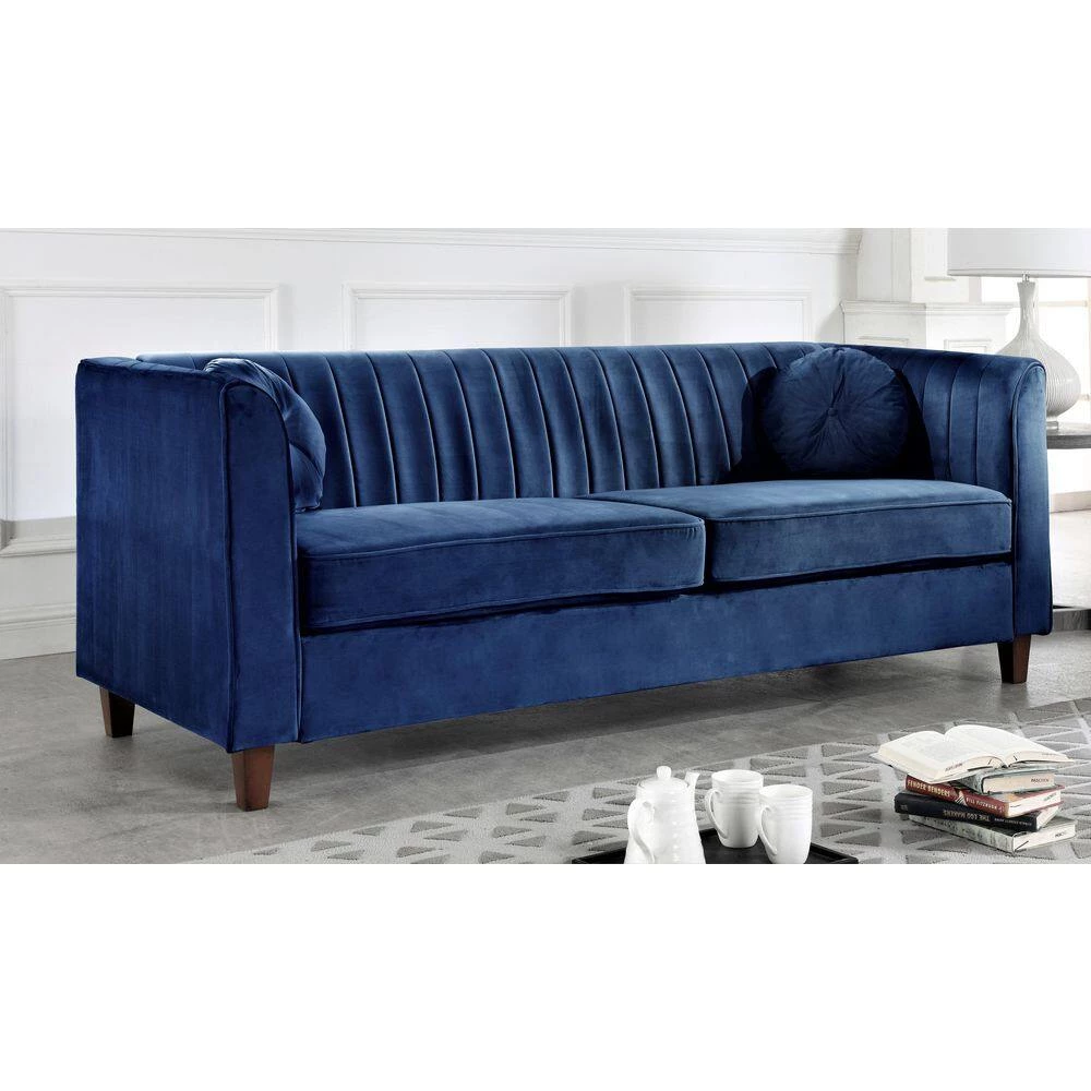 The perfect-Piece to reflect your regal tastes, this classic Kitts Classic Chesterfield Sofa anchors your seating ensemble in timeless appeal.Crafted from the wood frame, this dapper design strikes an updated, clean-lined silhouette with tight square arms and wood tapered feet.Crushed velvet upholstery brings out this sofas glamorous side, while exquisite details including high-density foam fill with spring support, piped seat cushions, matching bolster pillows, and a button-tufted backrest elevates the design with coordinating throw pillows.