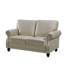 Ramos 61 in. W Ivory Round Arm 2-Seats Velvet Nailhead Straight Lawson Sofa by US Pride Furniture
