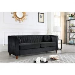 Lory 79.5 in. W Square Arms Velvet 3-Seats Straight Lawson Sofa with in Green by US Pride Furniture