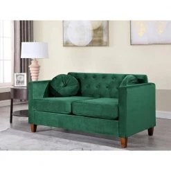 Lory Kitts 55 in. Green Velvet 2-Seater Chesterfield Loveseat with Square Arms by US Pride furniture