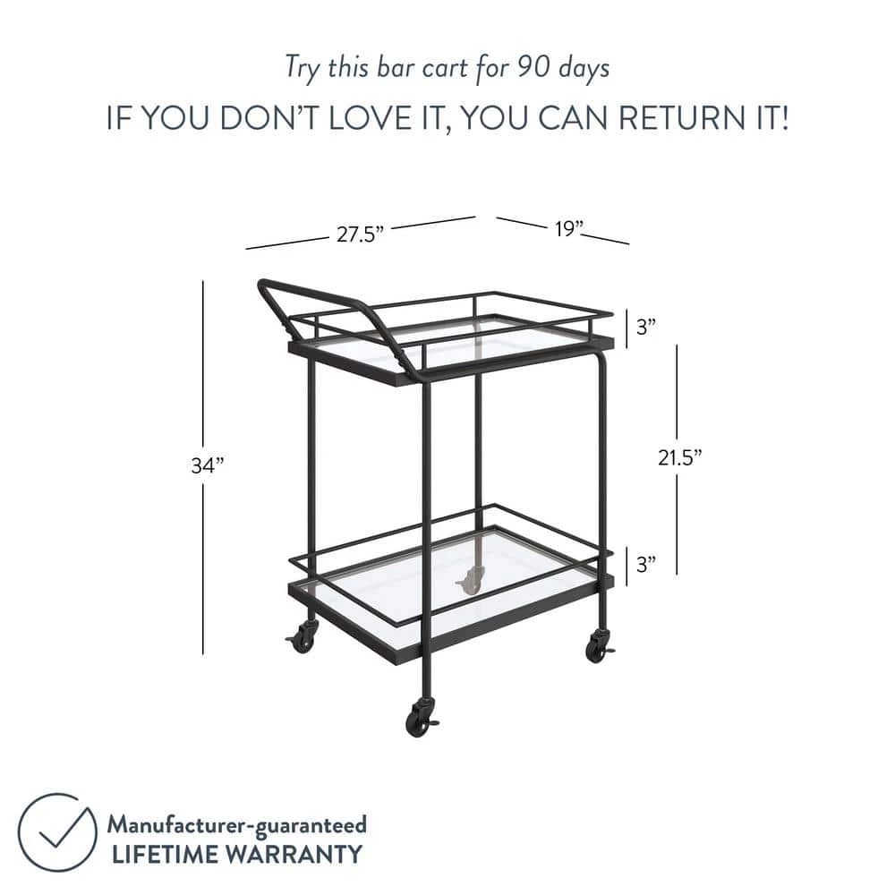 - Sally bar cart’s sturdy metal frame has 2-tiered tempered glass shelves that adds an elegant look