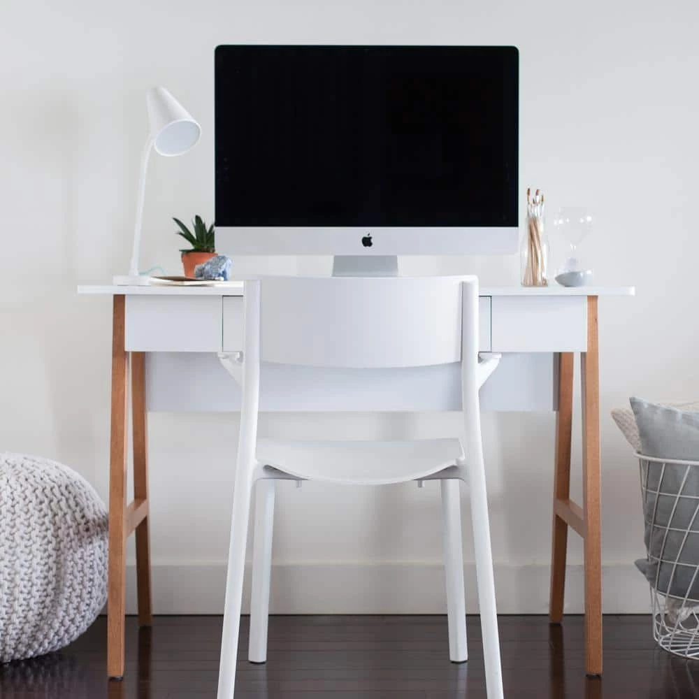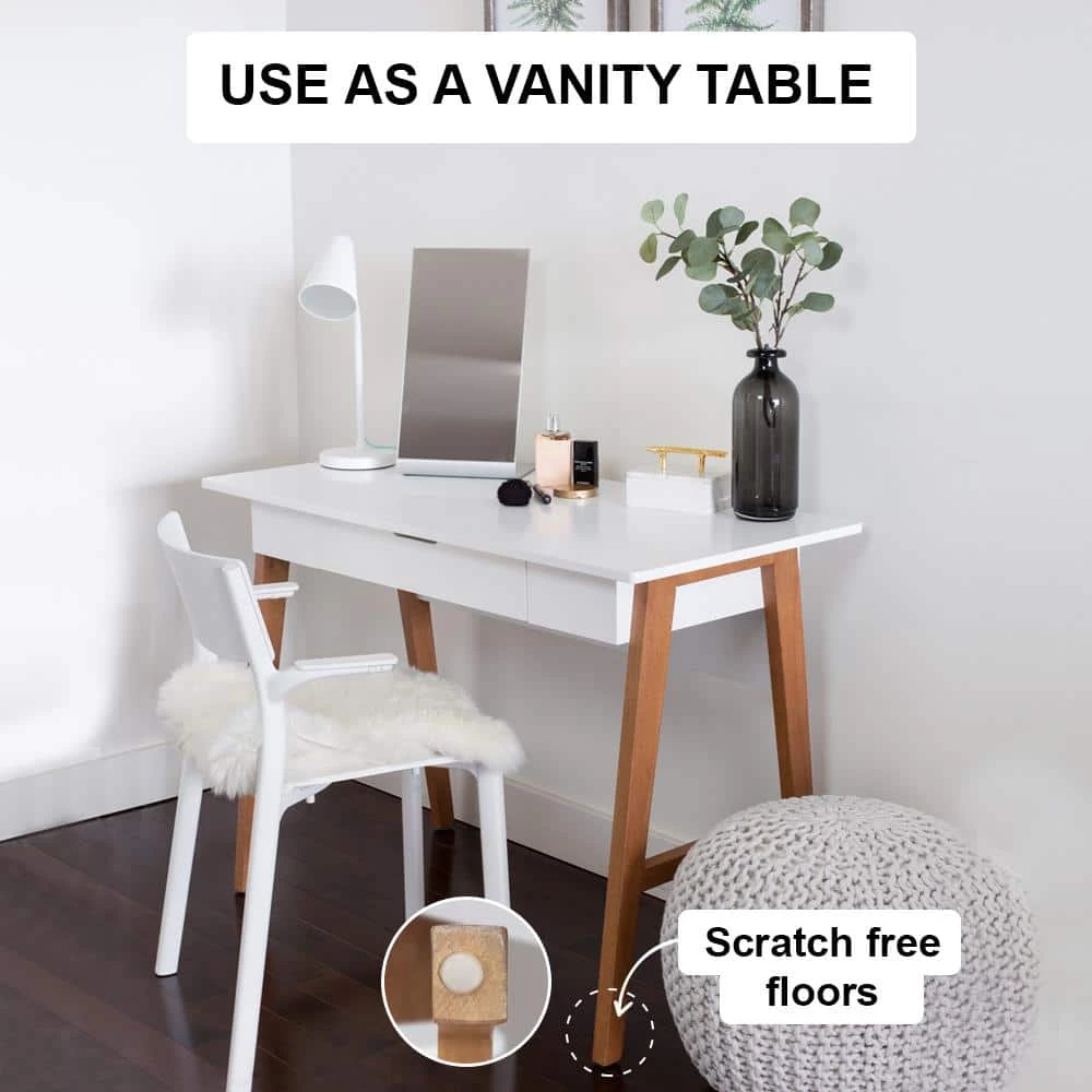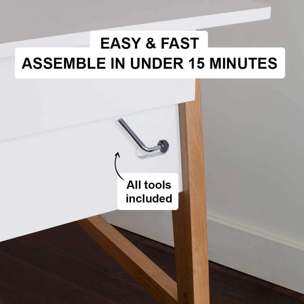 - The writing table is constructed with quality engineered wood top, painted in white for a modern look.
