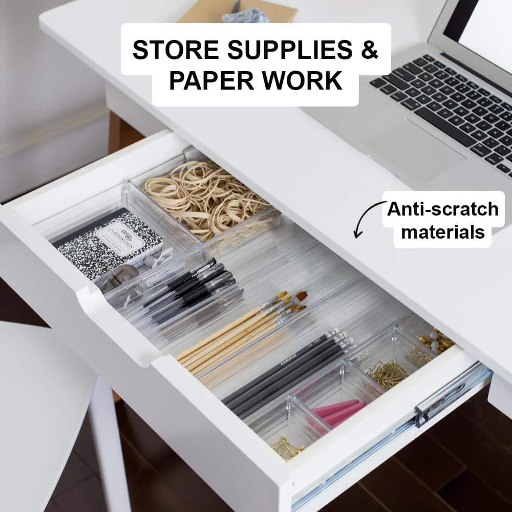 - Store your keyboard and supplies inside a built-in drawer.