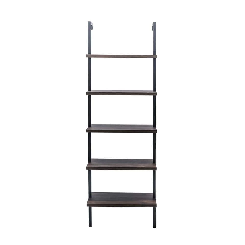 - The Theo Industrial Ladder Shelf is built with a durable metal frame and oak-laminate reclaimed wood for a vintage look.