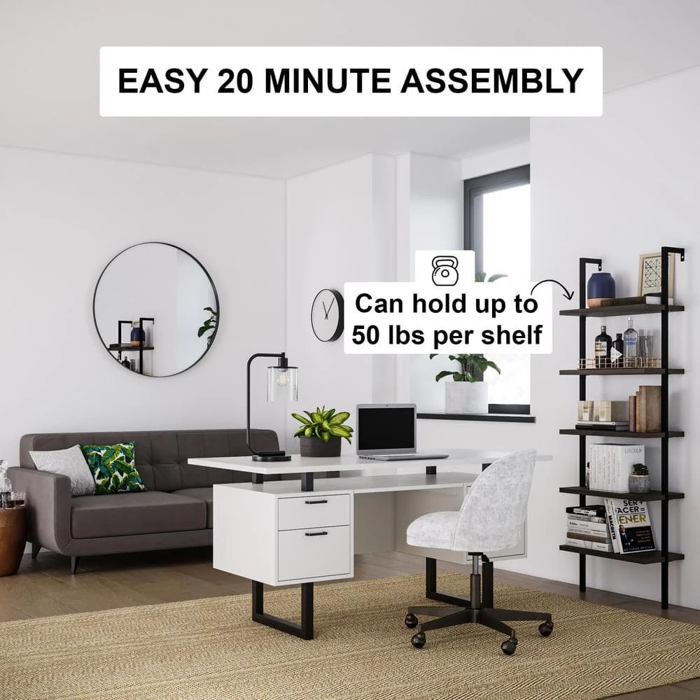Nathan James is the furniture company built for this generation. You don’t need to spend a fortune to get quality design-first furniture and when we say “easy assembly,” we mean it.Our elegant 5-tier bookcase has a minimalist style that can fit your home office or living room. The open-shelving structure will add visual space for your small apartment. It features easy-to-assemble design you can mount to any wall.