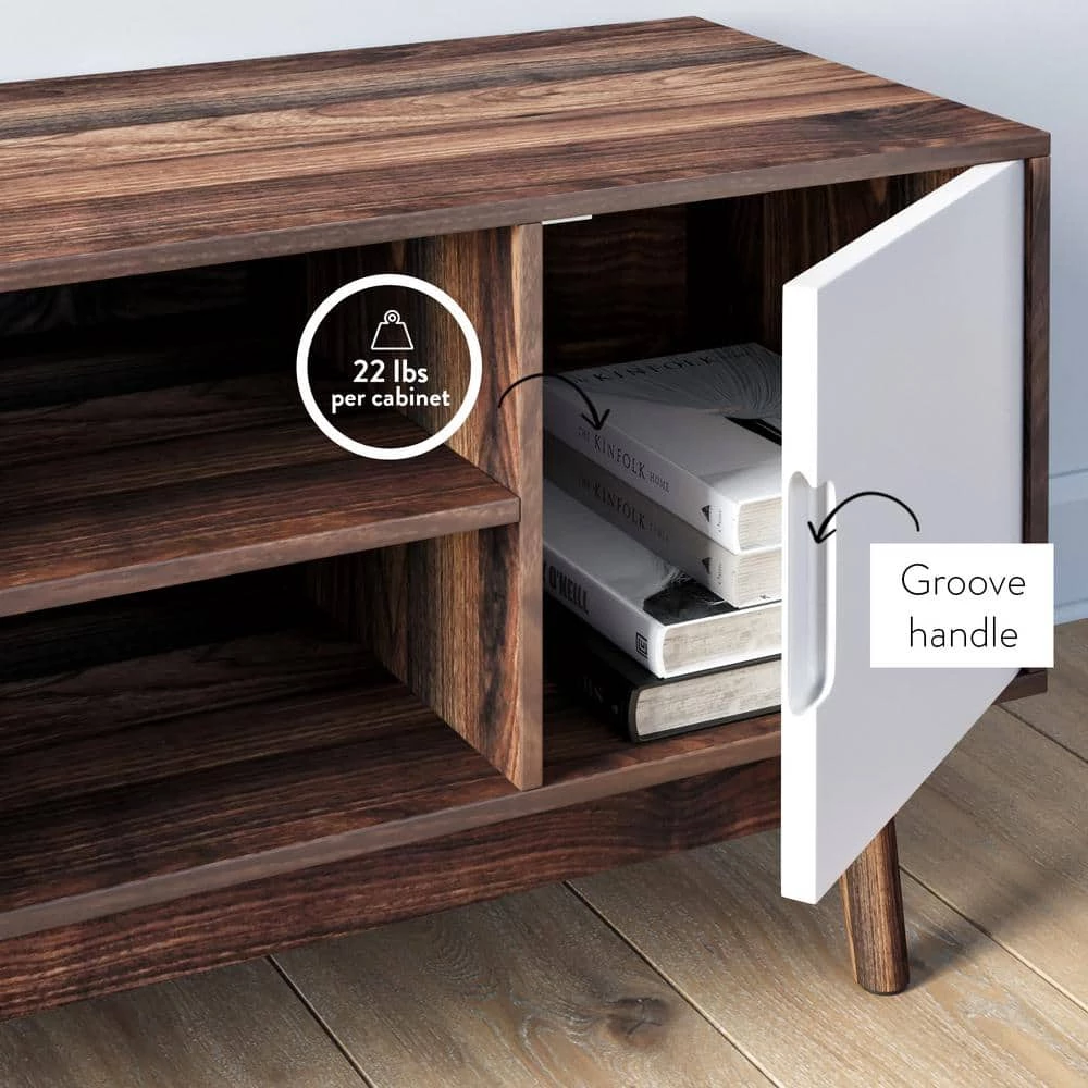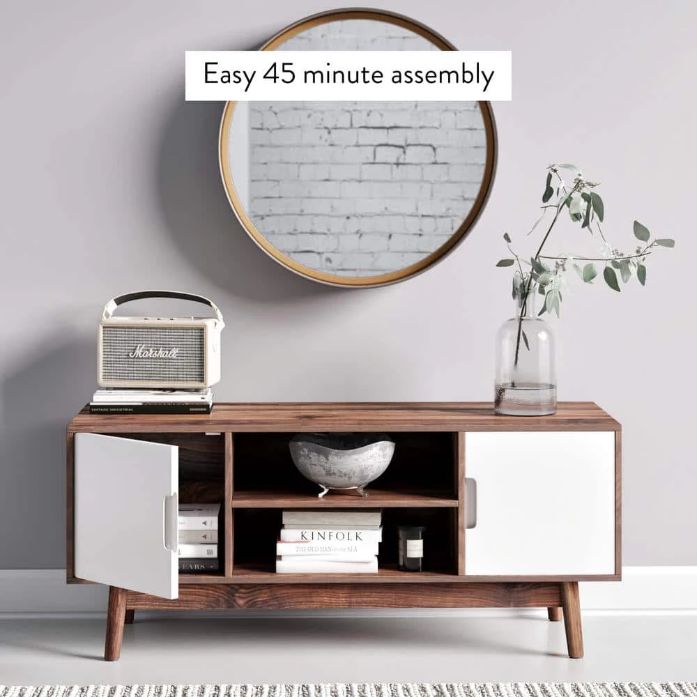 Wesley is a media console designed for mid-century and Scandinavian homes. Top shelf can serve as a TV stand while two cabinet doors and two-shelf drawers are perfect to keep your entertainment center clutter-free.Nathan James is the furniture company built for this generation. You don’t need to spend a fortune to get quality design-first furniture and when we say easy assembly, we mean it. Our guarantee is our word. Your purchase is backed by a 100% money-back guarantee. If you have any quality issues just contact us and we will send you a replacement immediately, no questions asked.